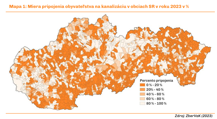 Miera pripojenia obyvateľov na kanalizáciu v obciach SR v roku 2023